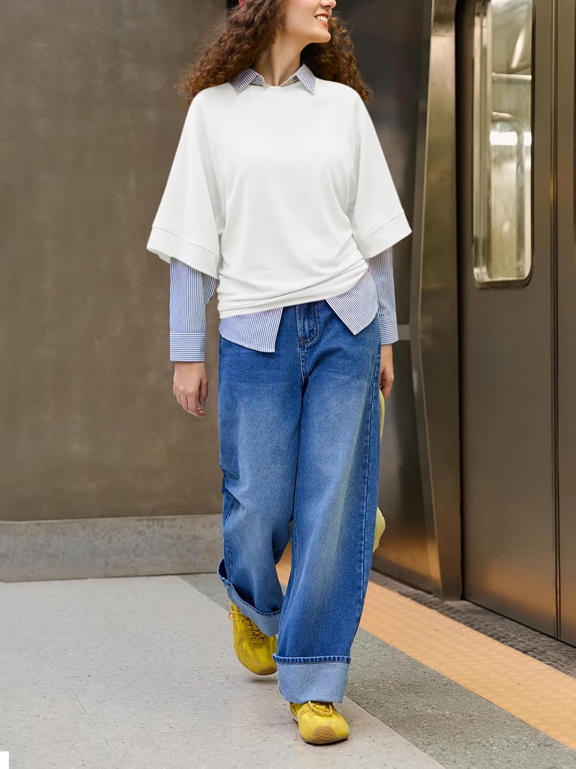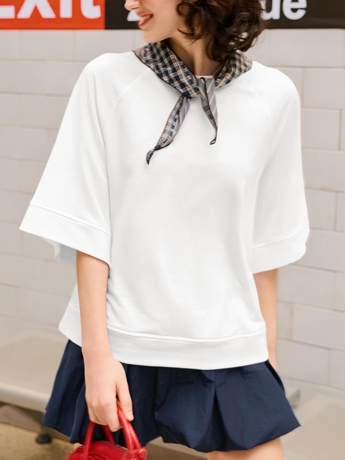 Womens Oversized Half Sleeve T-Shirts Crew Neck Boxy Basic Tees Tops Summer Casual Loose Fit Tunic Shirts