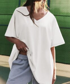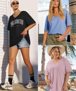 Womens Oversized Shirts V Neck Plus Size Spring Workout Summer Tops Beach Vacation 2026 Gym Clothes Basic Tee