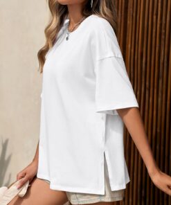 Womens Oversized Tshirts Summer Casual Short Sleeve Crew Neck T Shirt Loose Fit Side Slit Tee Tops