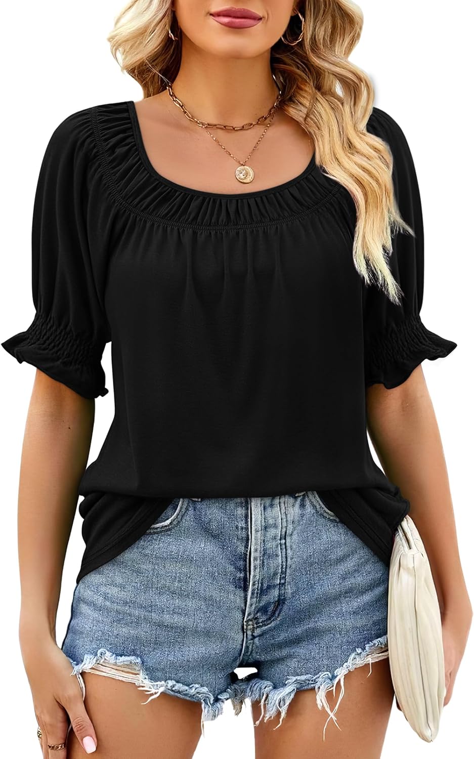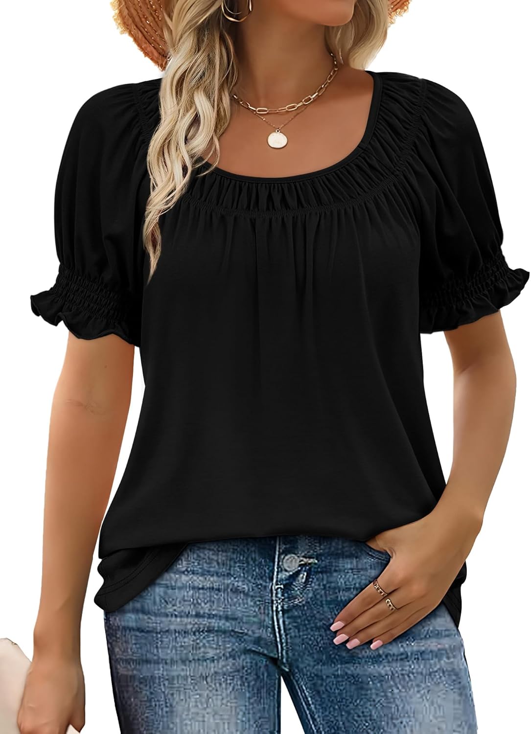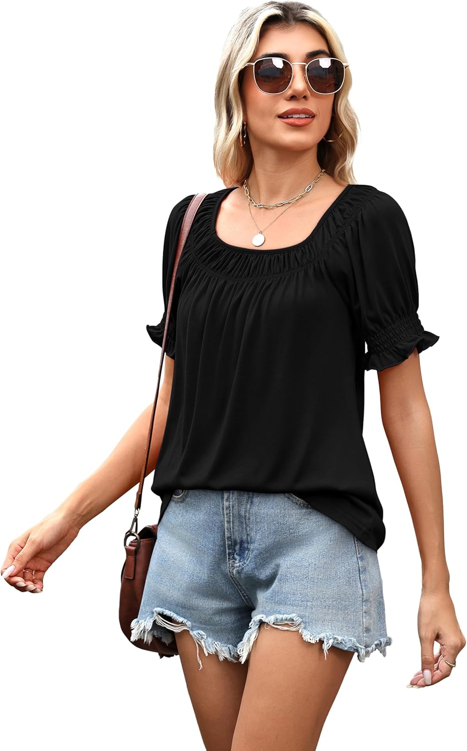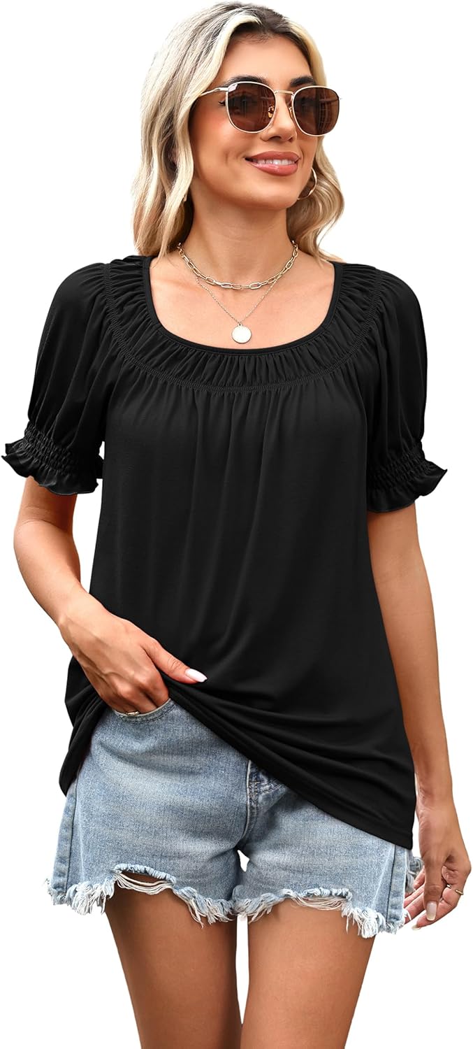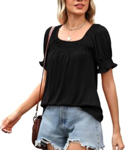 Womens Short Sleeve Square Neck Summer Tops Dressy Casual Blouses Trendy Clothes 2026
