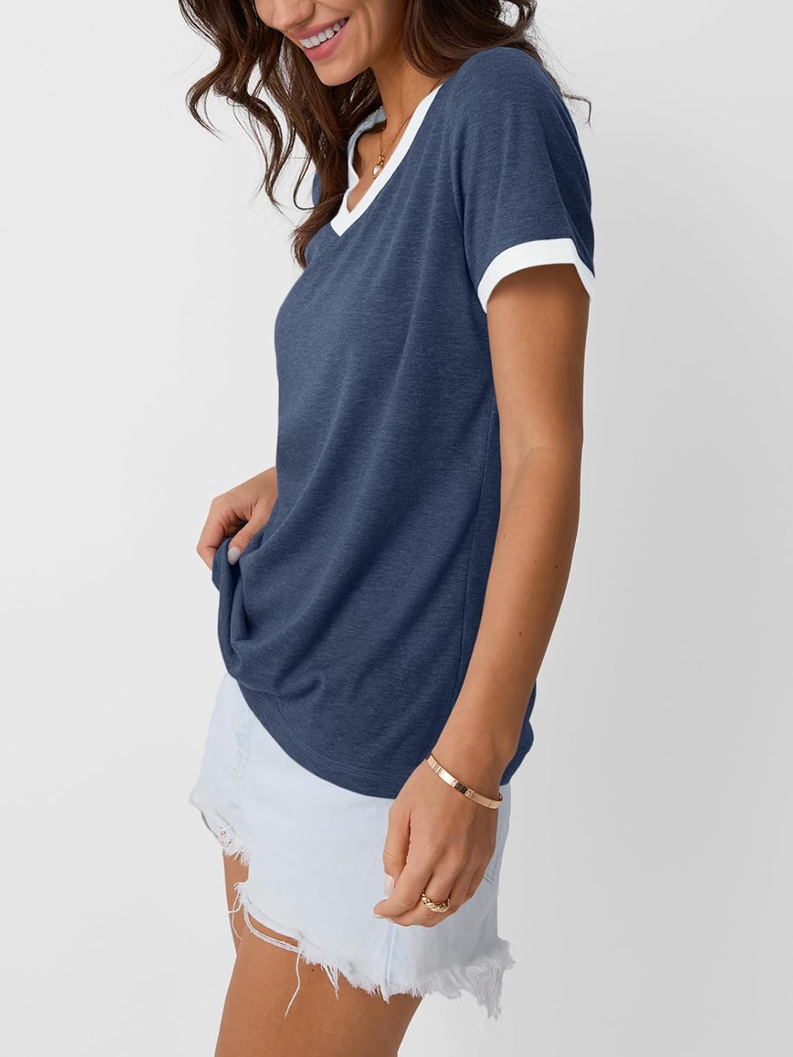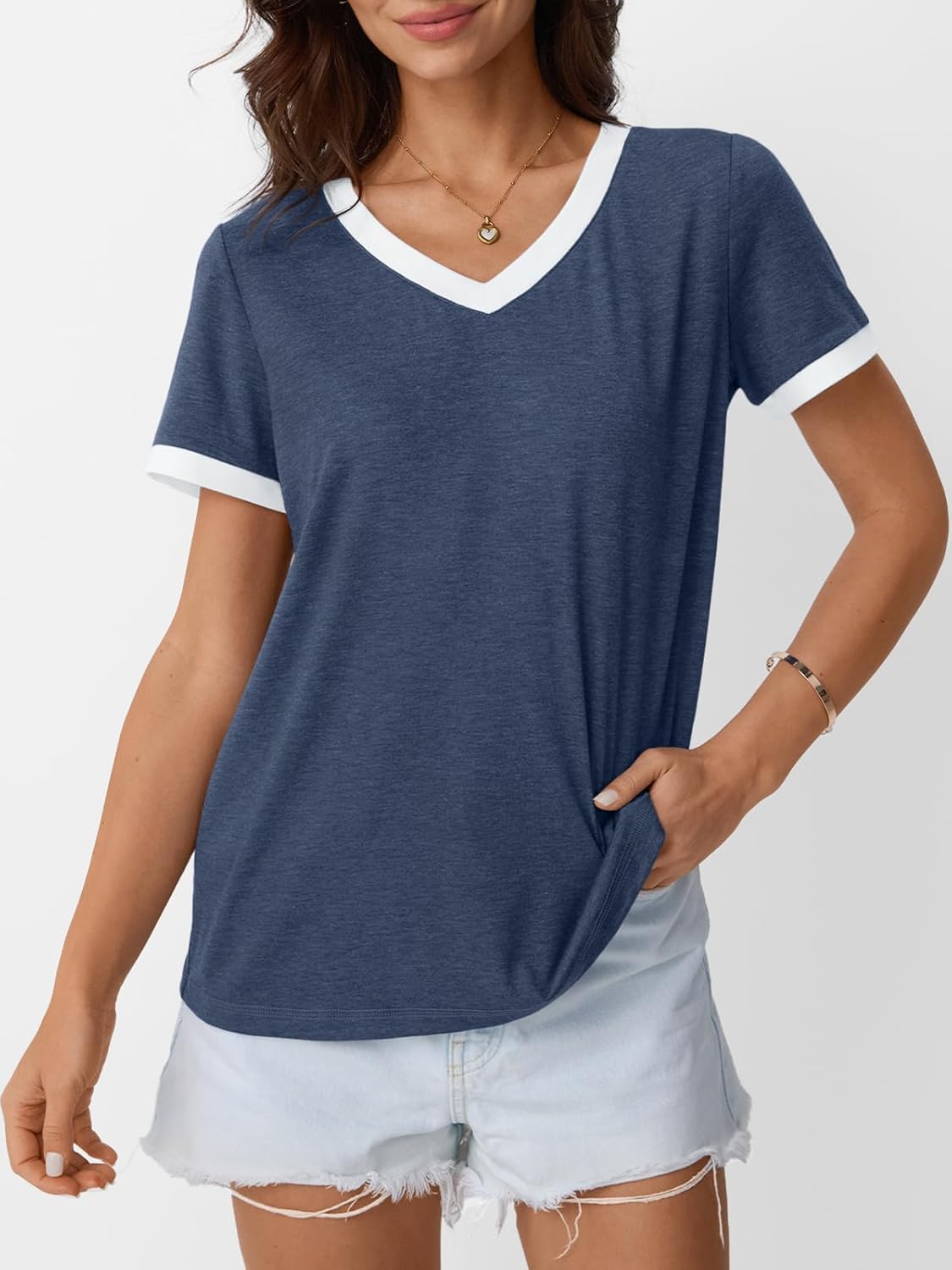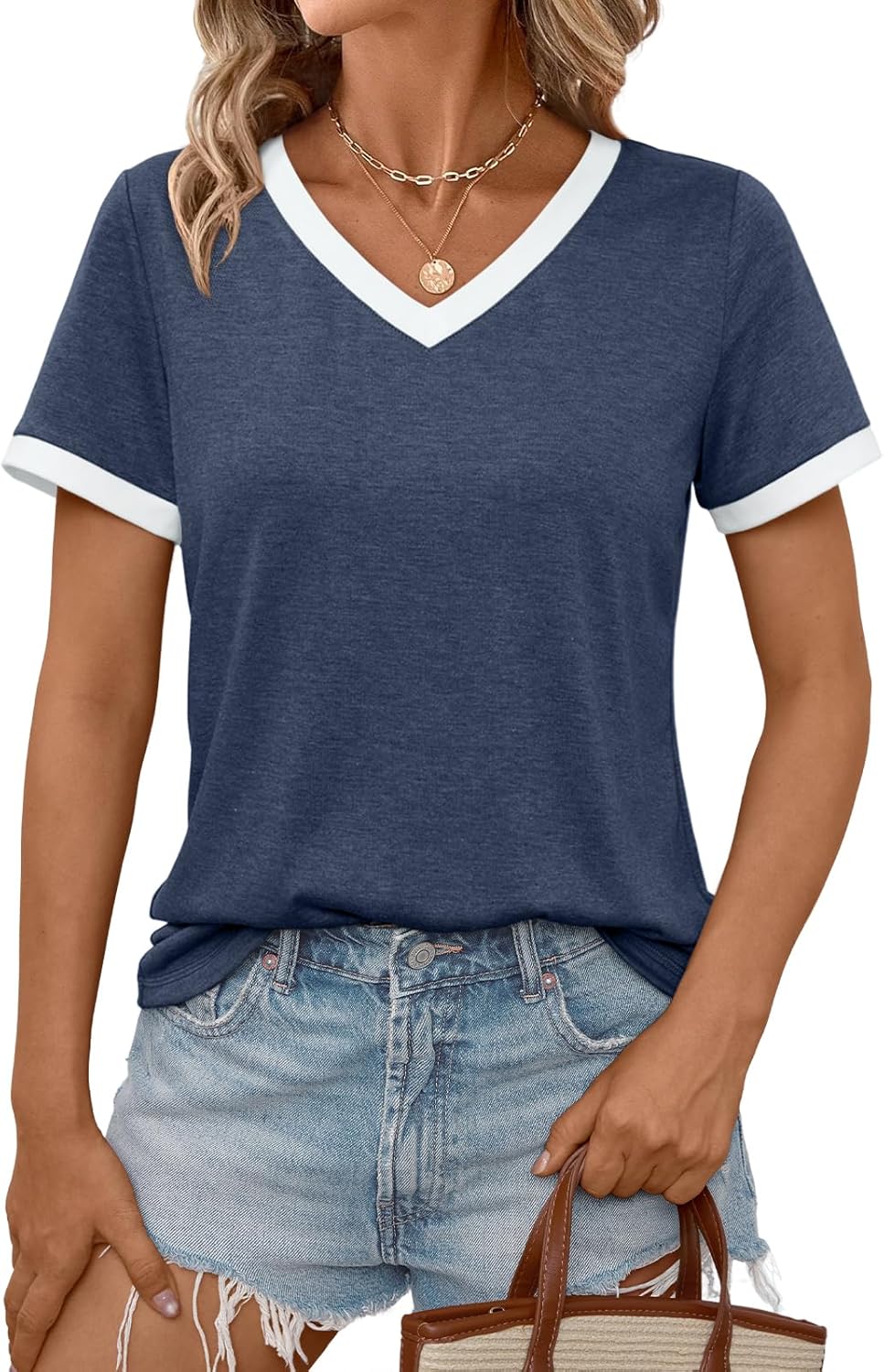 Womens Short Sleeve T-Shirts Summer Tops Casual Soft Tunic V Neck Basic Workout Clothes Spring Fashion Outfits 2026