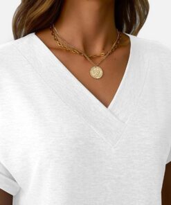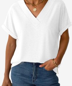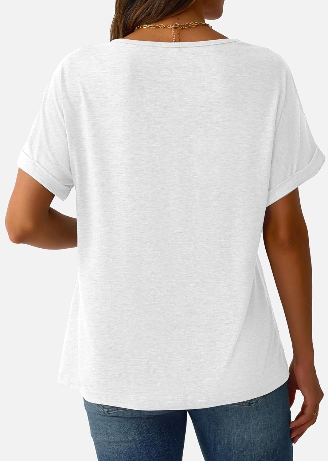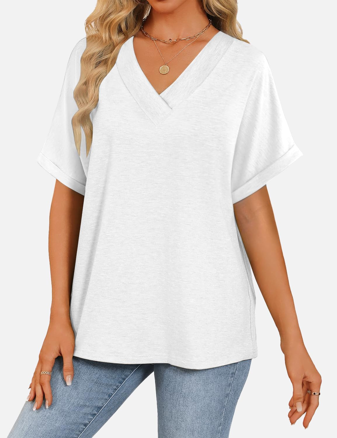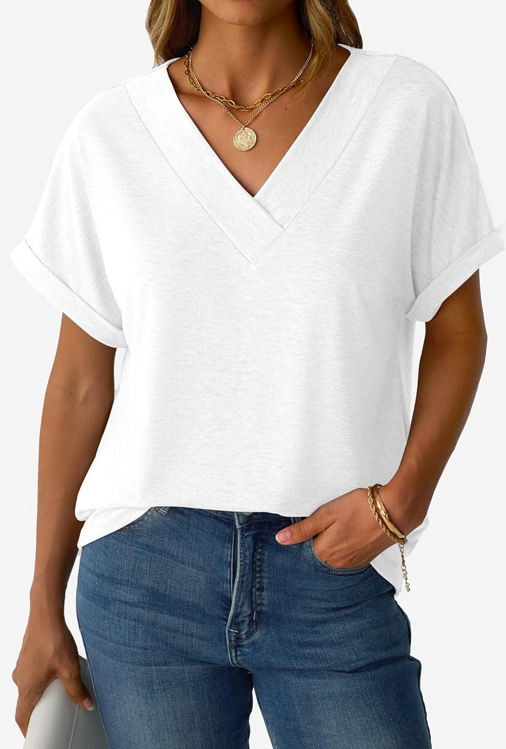 Womens Short Sleeve T Shirts V Neck Loose Fit Shirts Summer Casual Basic Tee Tops