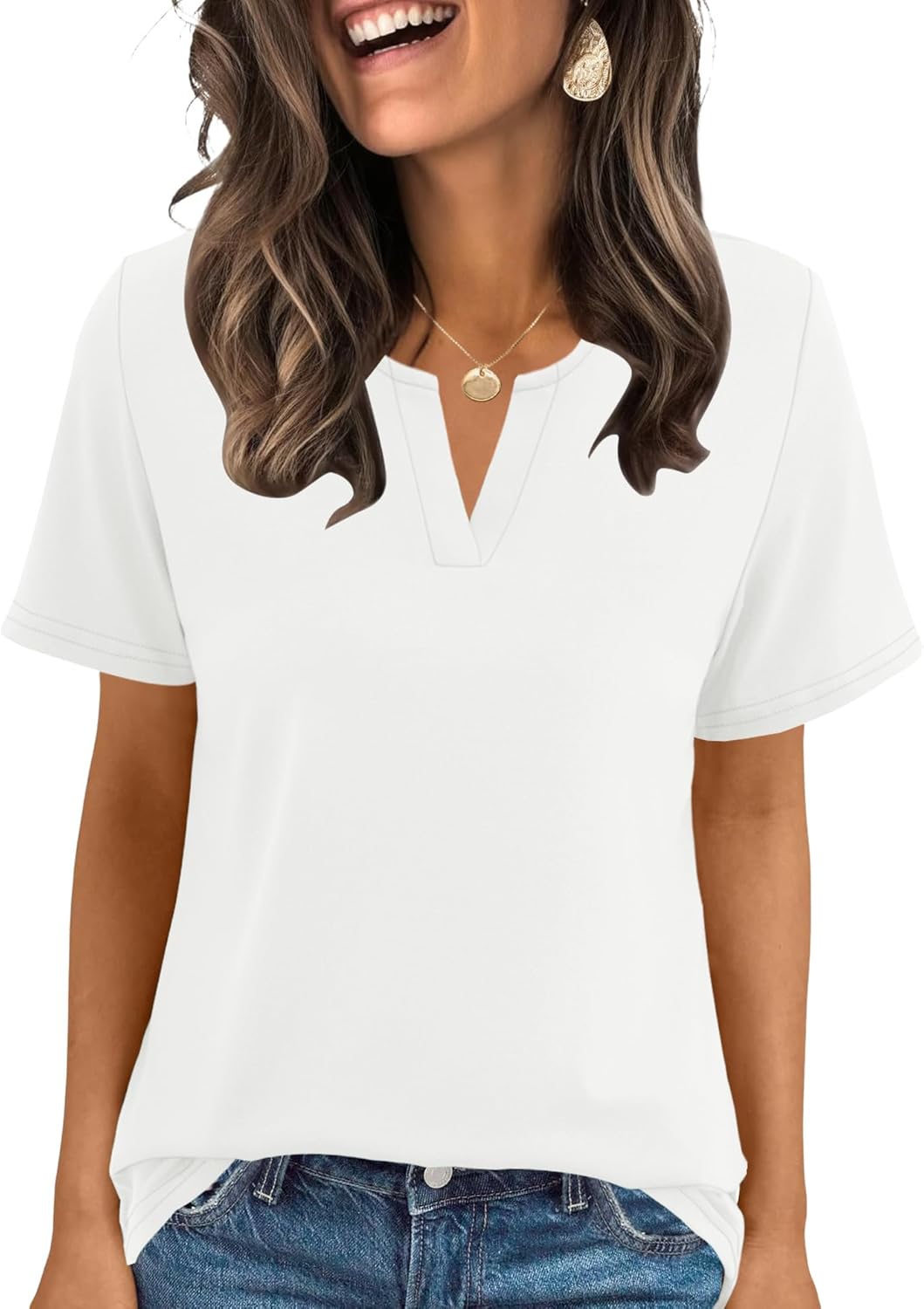 Womens Short Sleeve V Neck T Shirts Summer Tops Basic Tees Business Casual Blouses Trendy Fashion Clothes