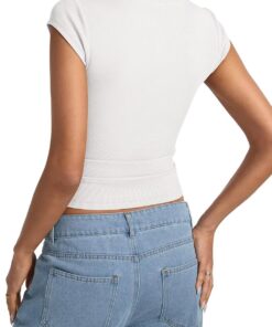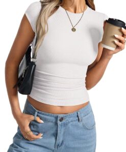 Womens Sleeve Tops Summer Crew Neck Short Sleeve Shirts Slim Fit Basic Ribbed Tees Y2K Going Out Crop Tops