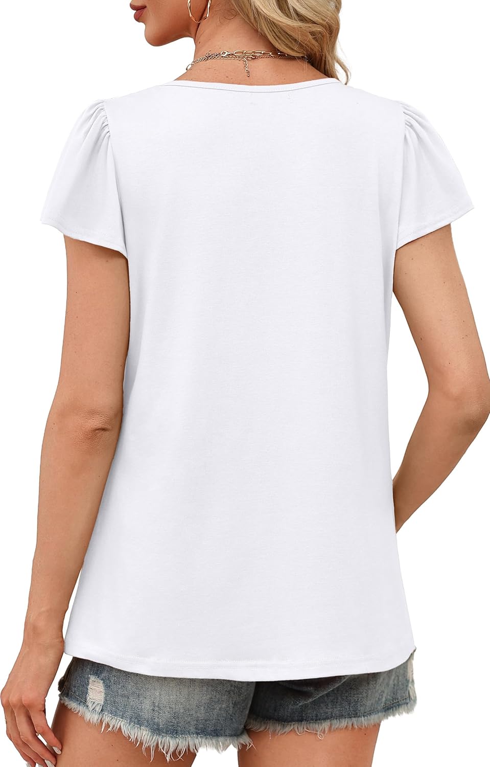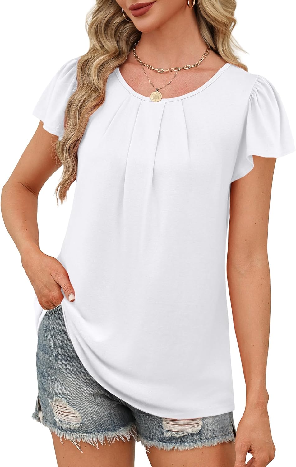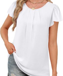 Womens Summer Tops Ruffle Sleeve Pleated Front Blouses Business Casual Shirts for Women Fashion Clothes