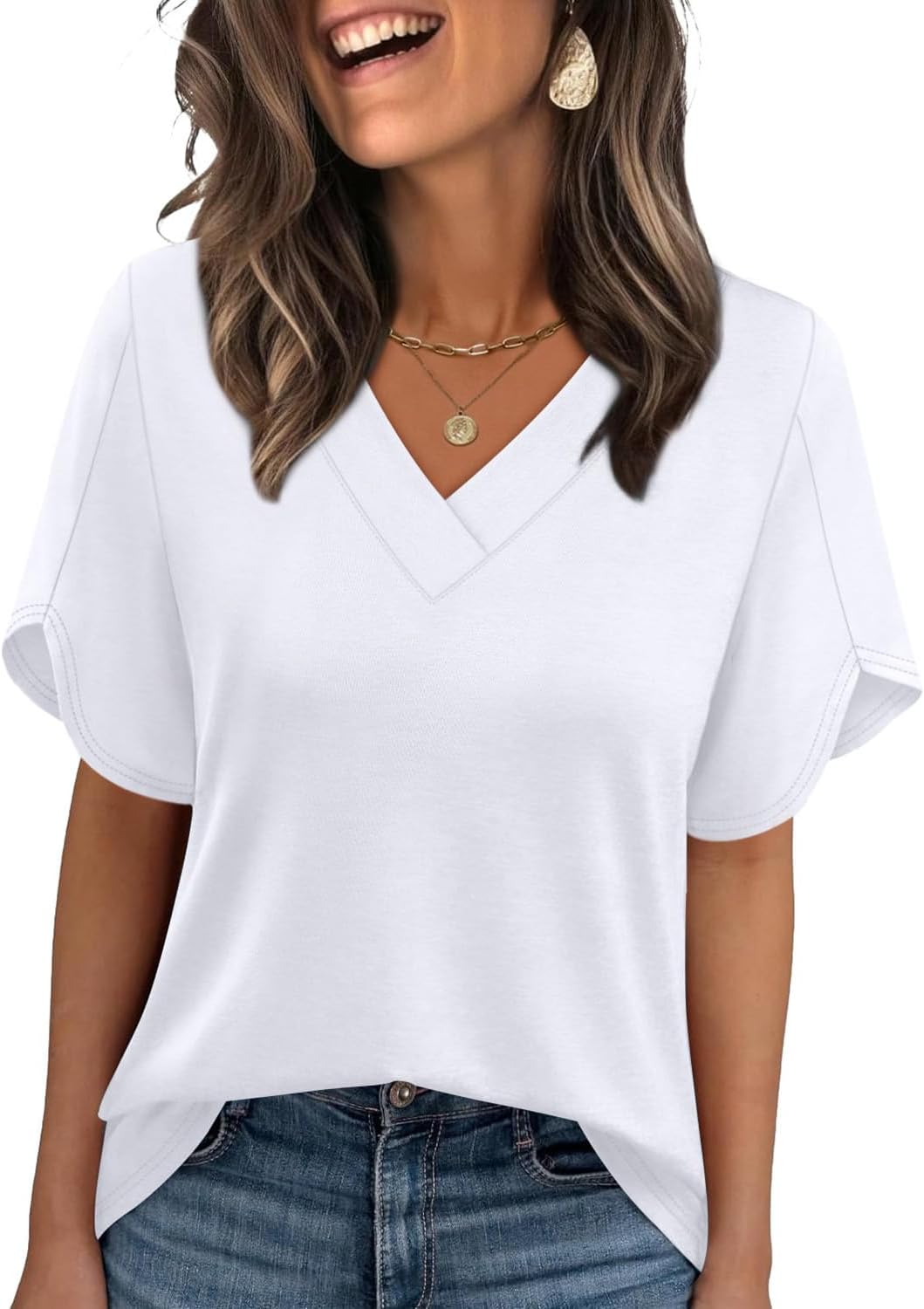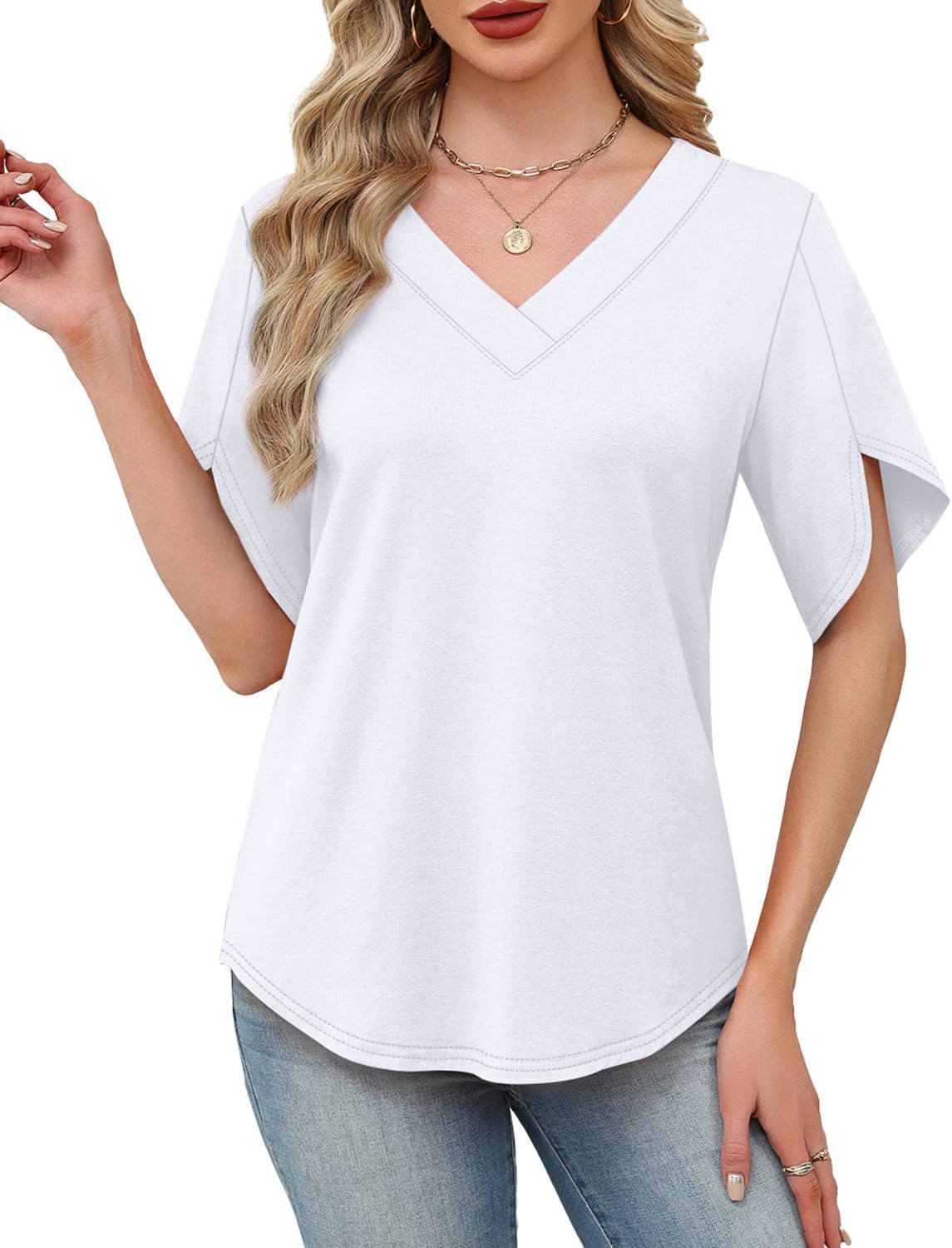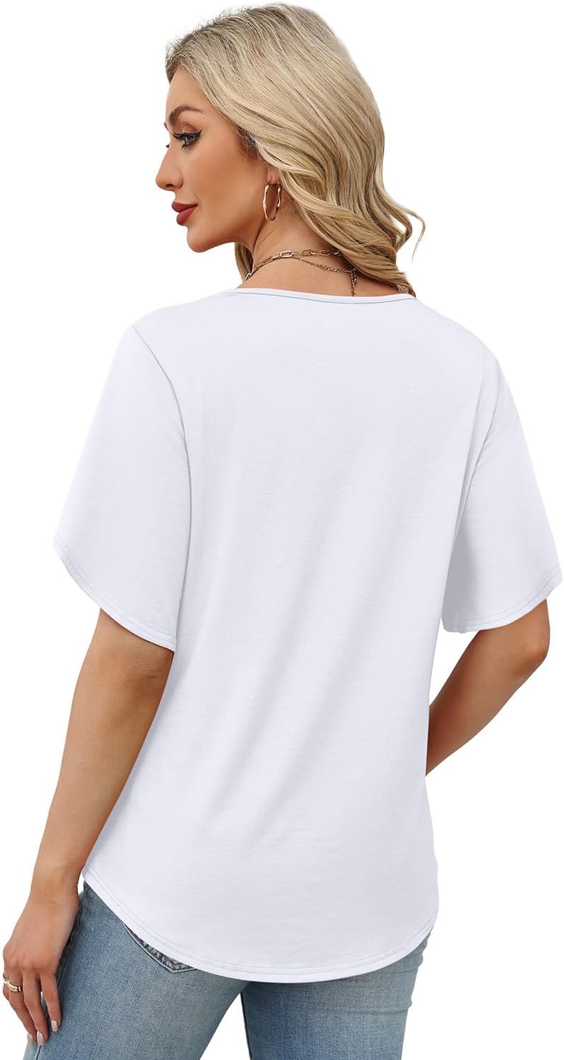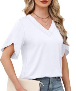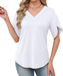 Womens Summer Tops Short Petal Sleeve Shirts Fashion V Neck Womens Clothing