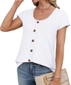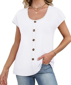 Womens Summer Tops Short Sleeve Shirts Button Down Blouses U Neck T Shirts Fashion Clothing