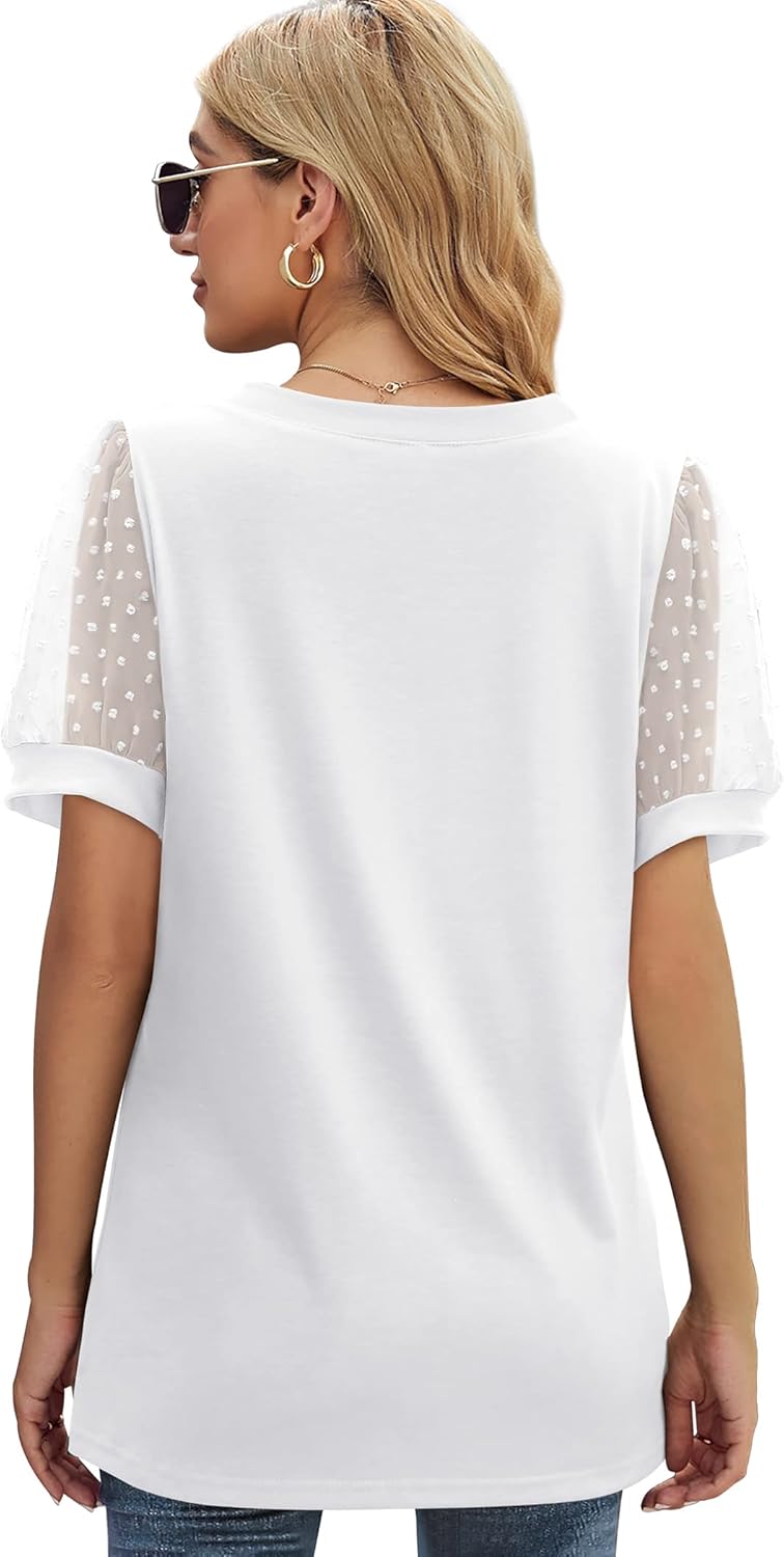 Womens Summer Tops V Neck T Shirts Swiss Dot Puff Sleeve Tops Loose Casual Tshirts