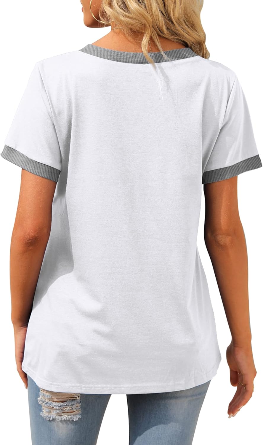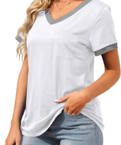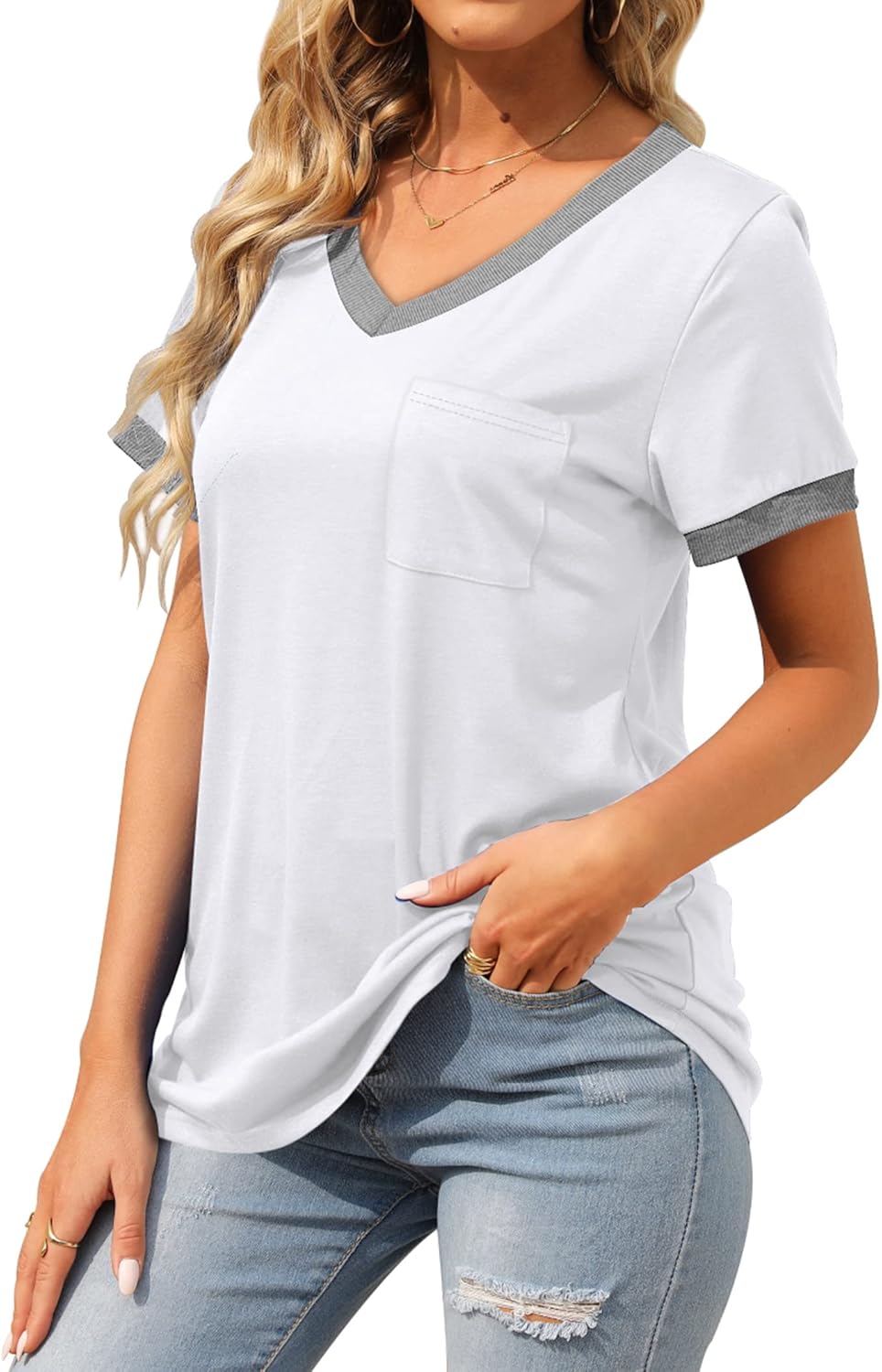 Womens T Shirts Short Sleeve V Neck Loose Casual Summer Tops 2026 with Pocket