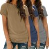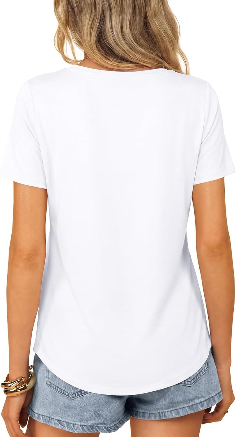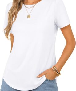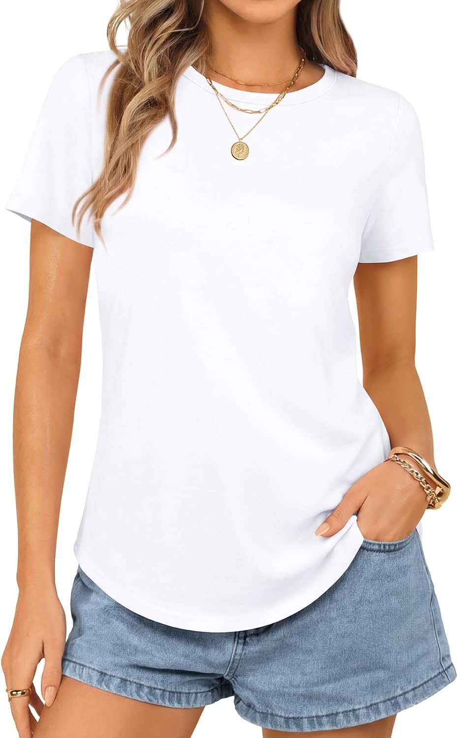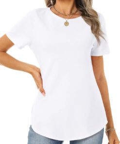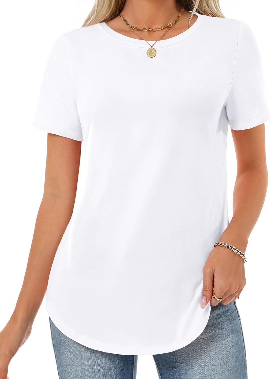 Womens Tops Cotton Short Sleeve Shirts Summer Crew Neck Basic Tees Casual Tunic Tops Curved Hem