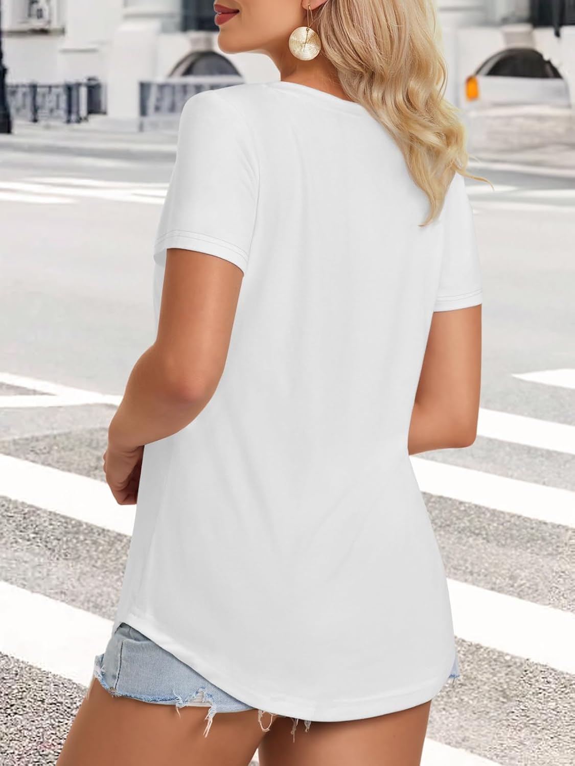 Womens V Neck Short Sleeve Summer T Shirts Curved Hem Plain Top Beach