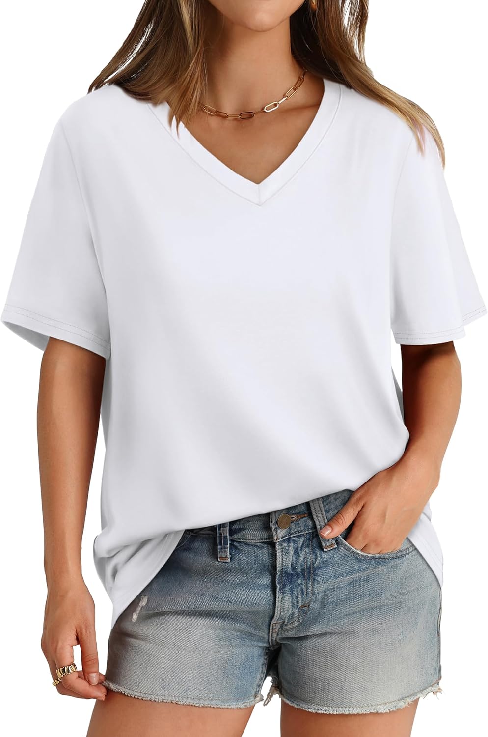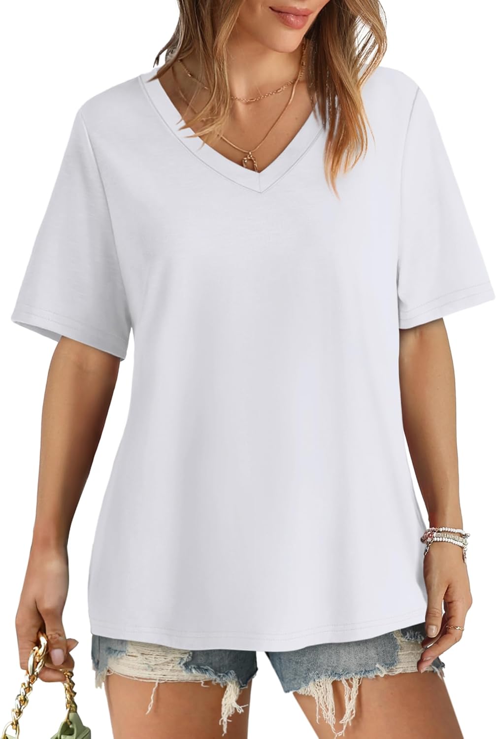 Womens T Shirts V Neck Short Sleeve Casual Loose Tees Tops 2024 Trending Now