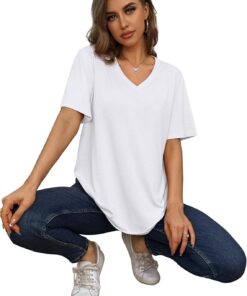 Be the first to review “Womens V Neck Short Sleeve T Shirts Summer Tops 2025 Casual Loose Tees Trending Now S-4XL” Cancel reply
