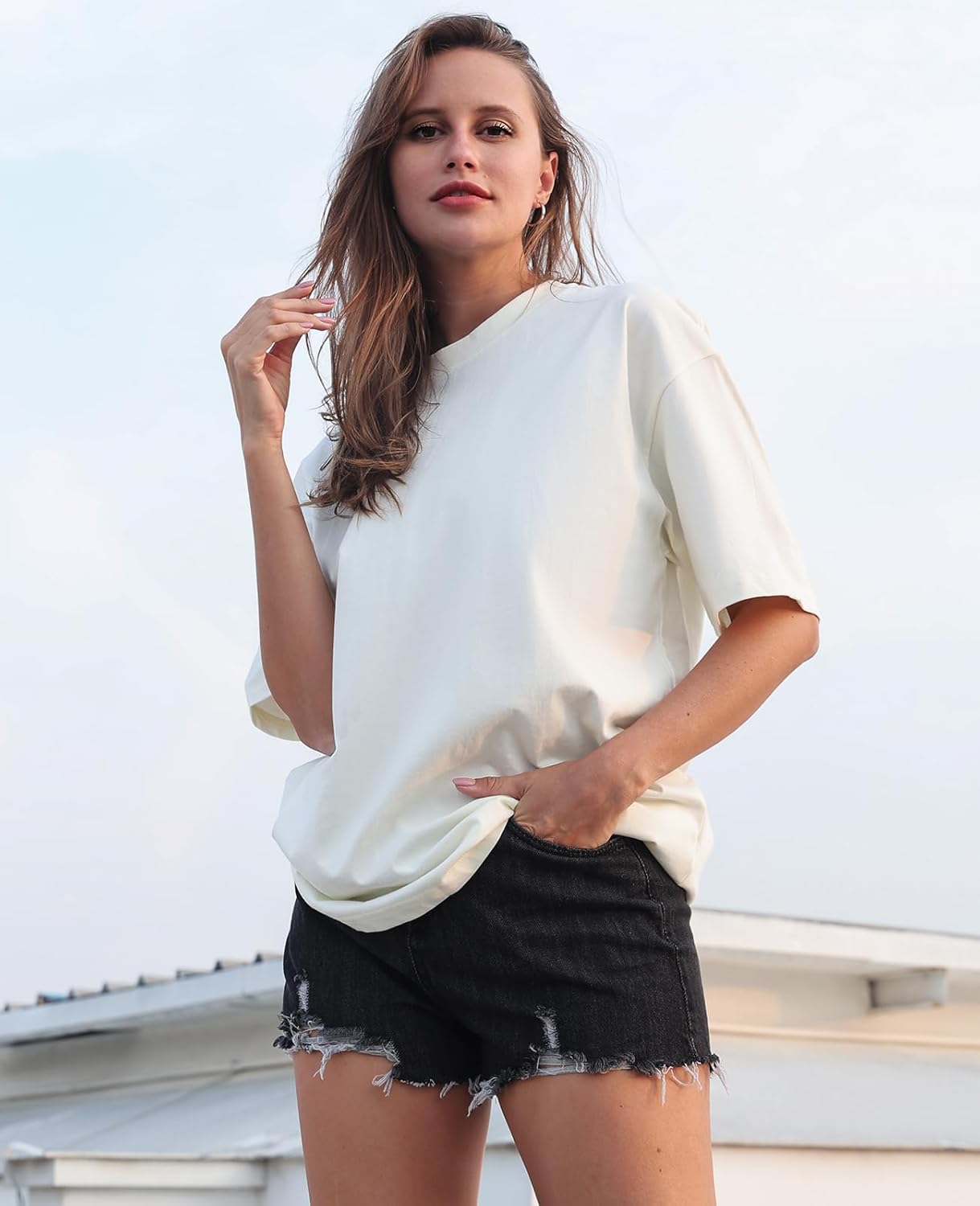 Womens Washed Vintage Oversized T-Shirt Baggy Workout Tops Short Sleeve Cotton Tshirts Streetwear Boyfriend Tee