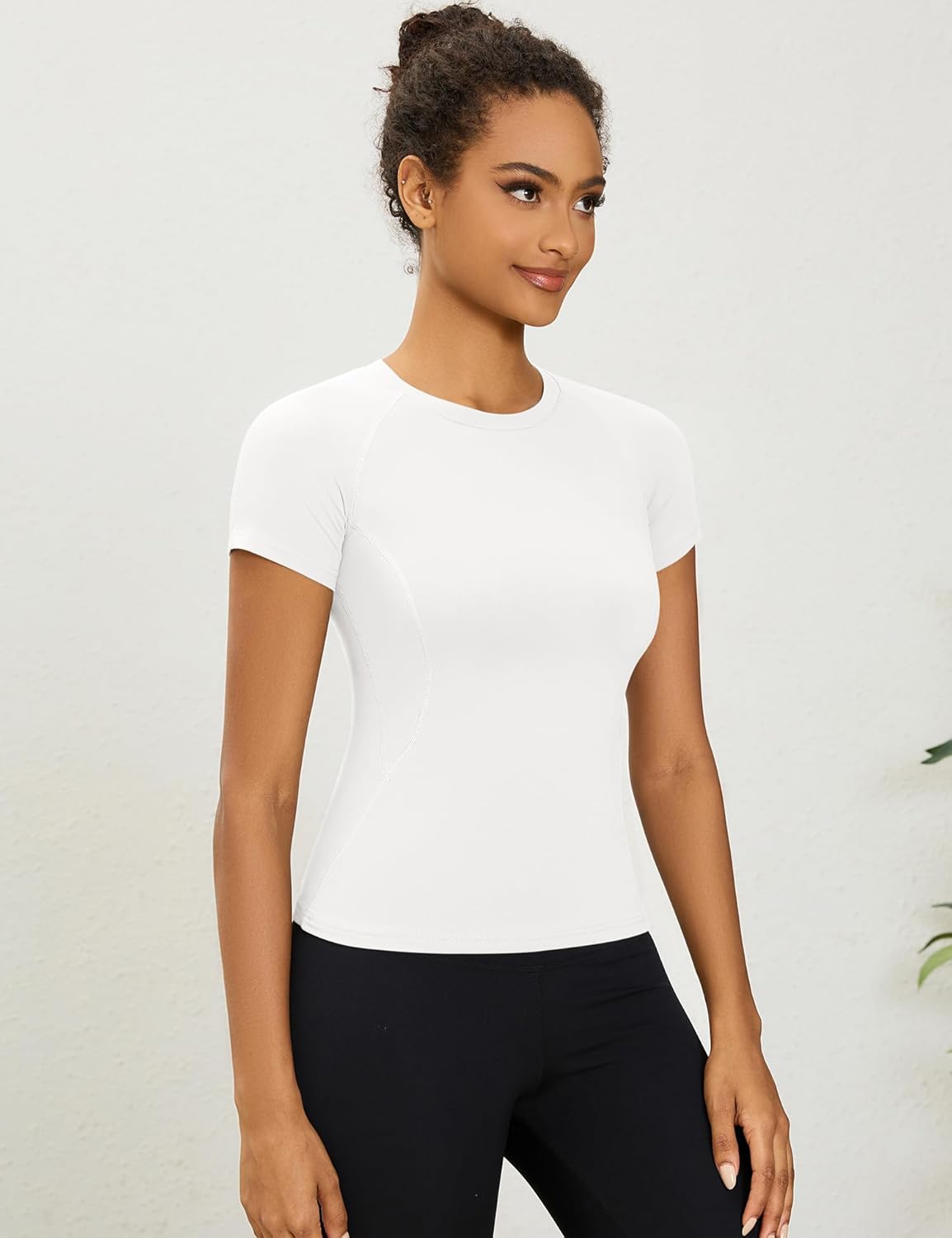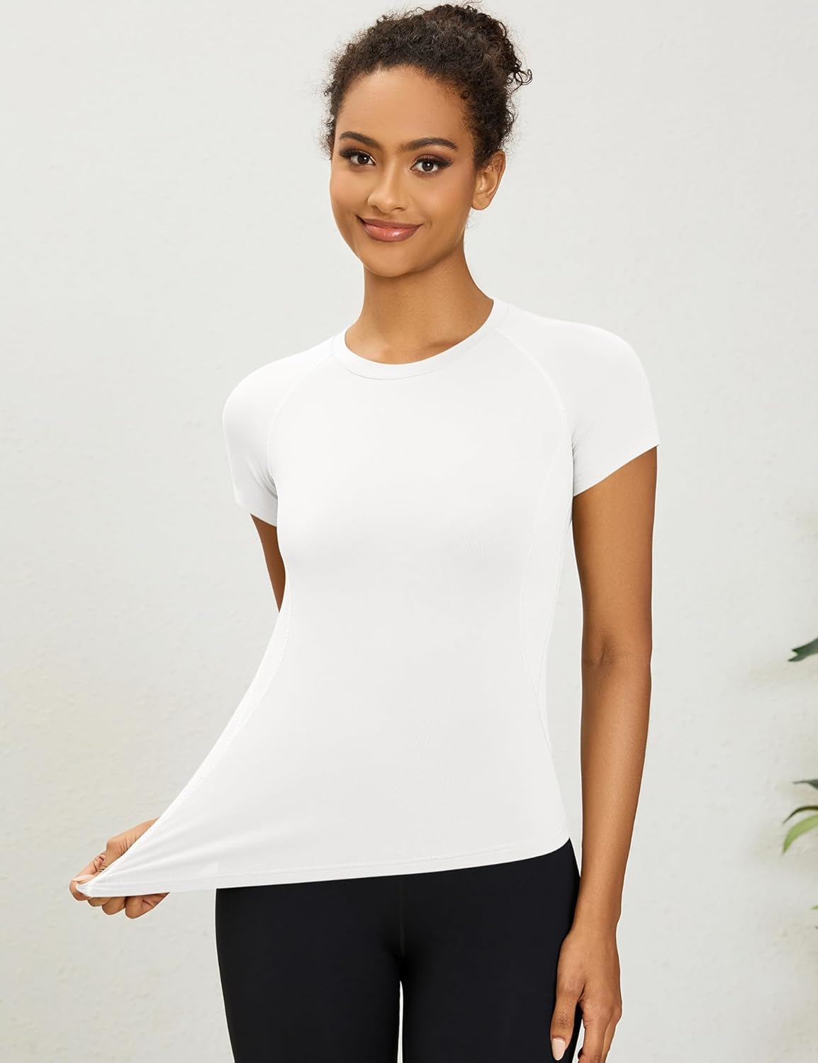 Womens Workout Tops Short Sleeve Raglan Athletic Shirts Yoga Gym Crewneck Quick Dry Tshirts